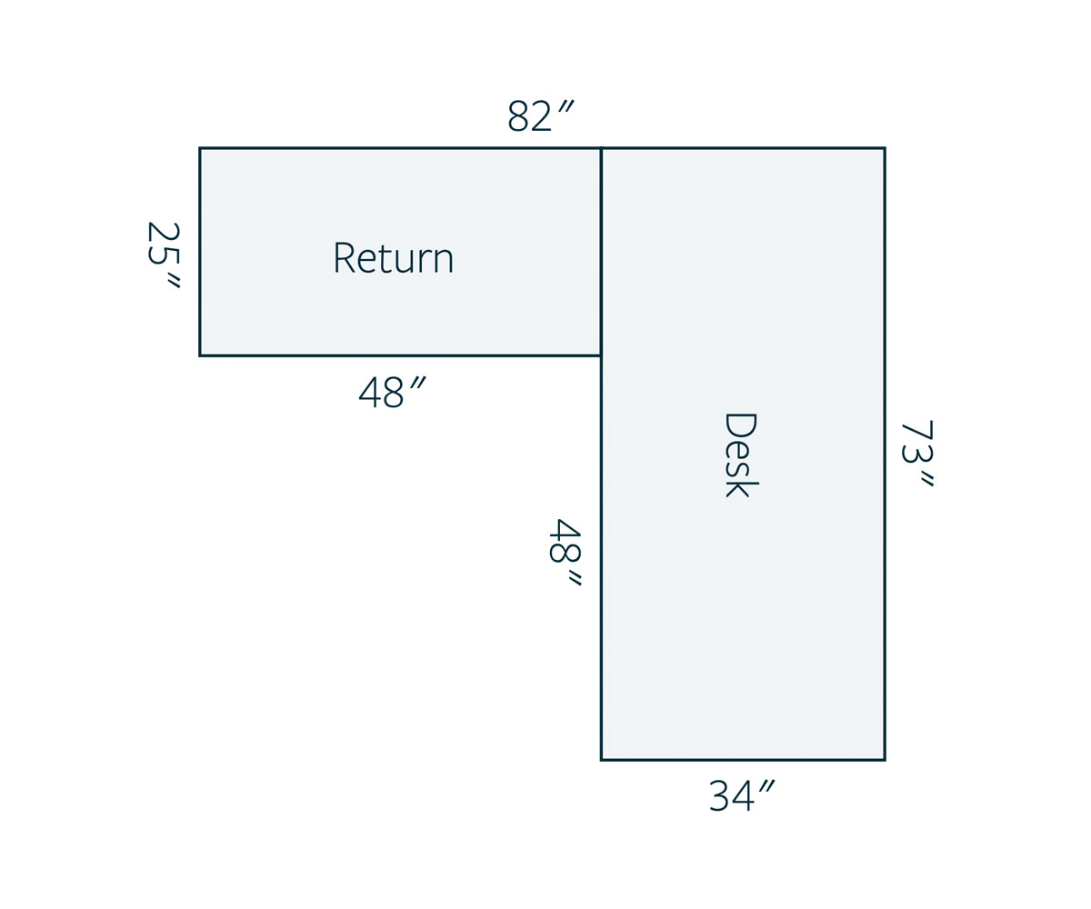 Left Return: 82″W x 25″D x 78¼”H