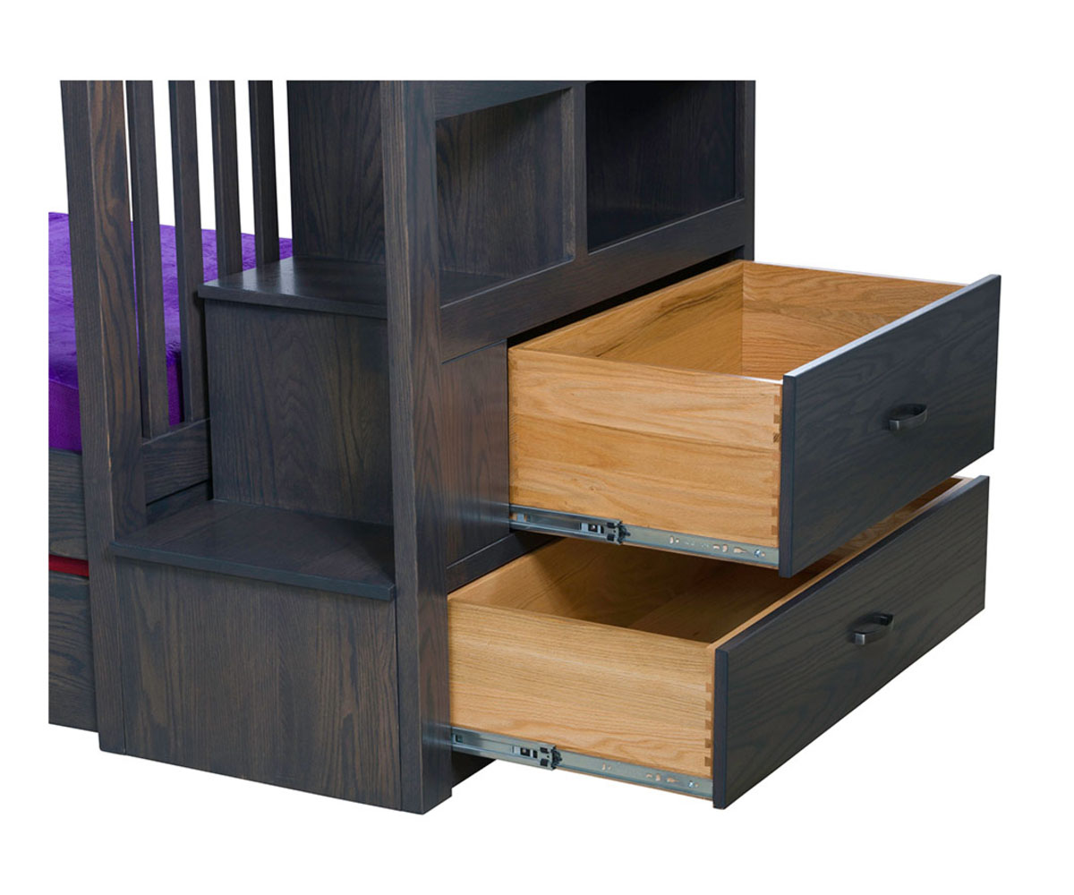 • Dovetailed storage drawers in the end of the stair unit