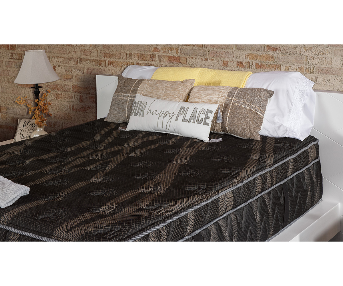 Aurora features a luxurious Euro-top design coupled with 3″ of premium latex foam for exceptional responsiveness and breathability. The cool-to-the-touch gold and black knit cover increases comfort while maintaining a refined look. Inside, fabric-encased coils adapt to you, giving consistent support across the mattress. With a plush but supportive feel, Aurora is ideal for sleepers seeking elevated comfort with natural performance benefits.