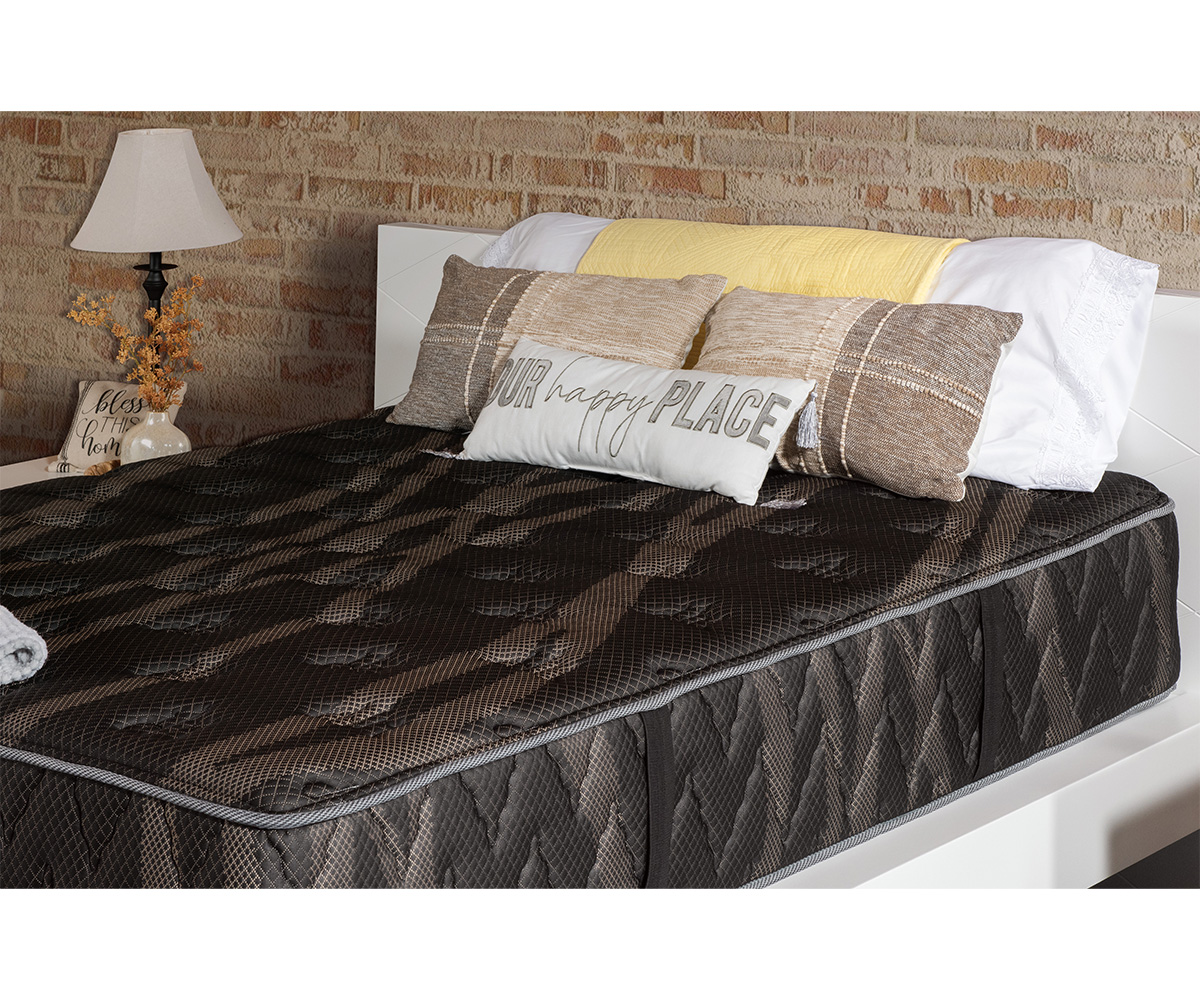 • Mattress core: 10″ fabric encased coils with foam